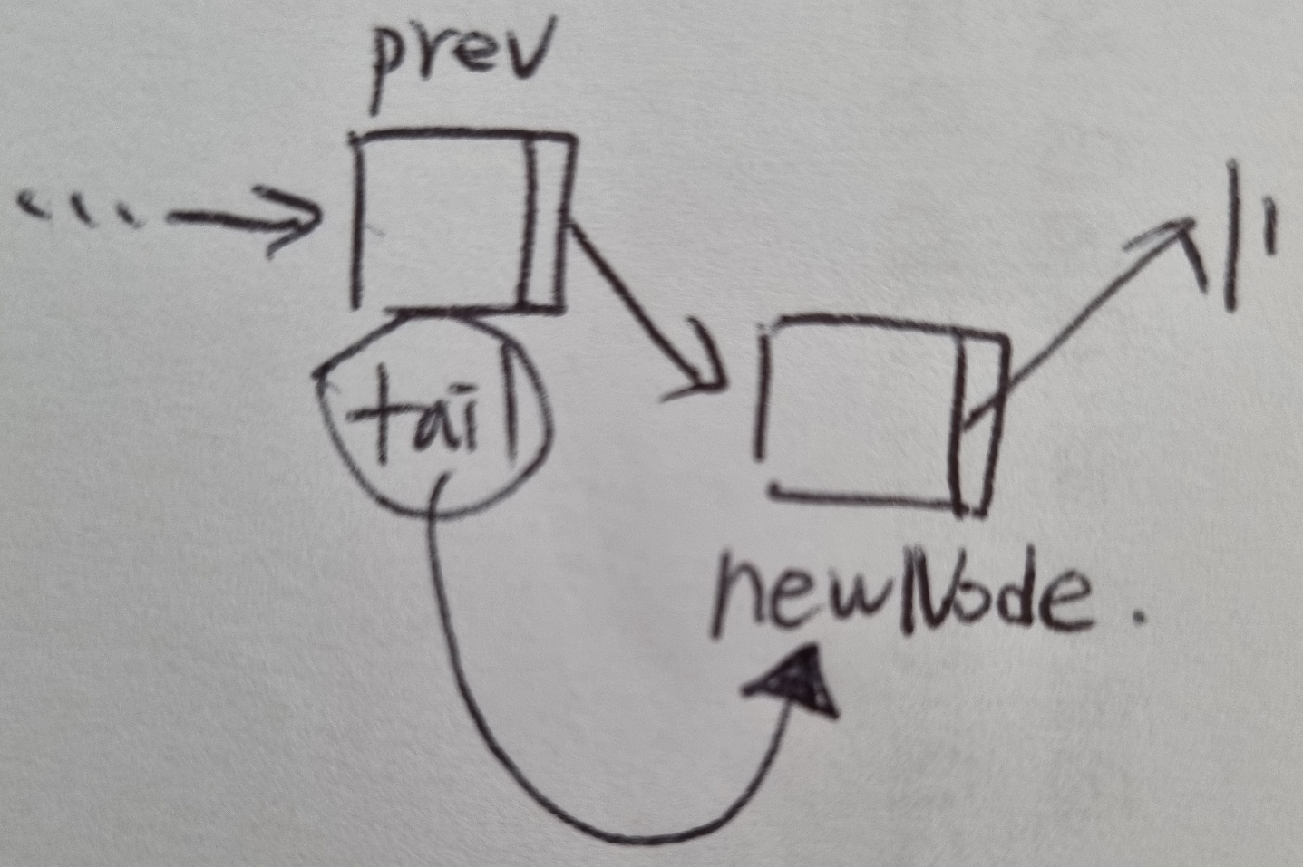 prev.next가 None인 경우가 tail 뒤에 newNode를 삽입하는 경우이므로 tail을 조정해 주는 부분이다.