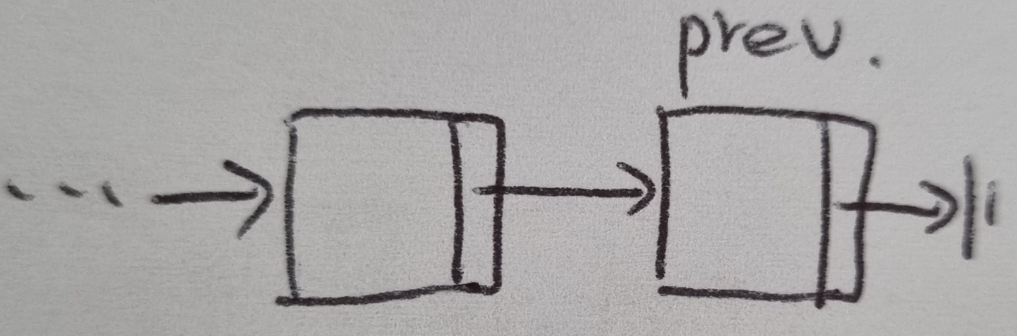 prev가 마지막 노드인지 판단하는 방법은 prev.next가 None인 경우이다.