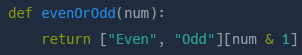 def solution(num): return "Even" if num%2==0 else "Odd"