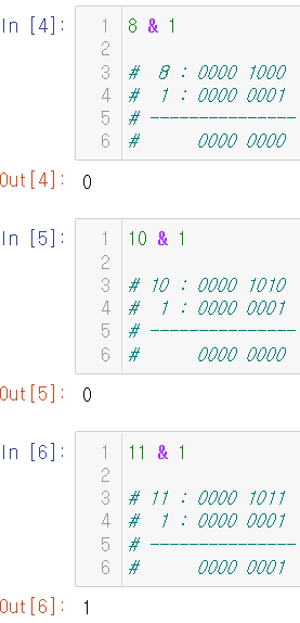홀수인 경우 이진수가 ...1로 끝나고 짝수인 경우 이진수가 ...0으로 끝나는 성질을 이용함