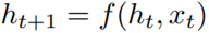 순환 신경망의 메모리는 비선형 함수 f를 이용해 새로운 입력값 xt를 받아 다음과 같이 업데이트된다.