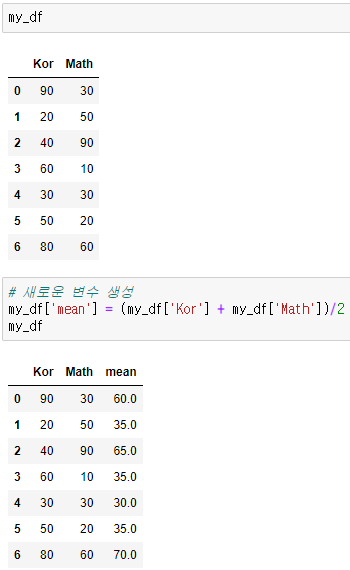 - 데이터 프레임 새로운 변수 생성 및 컬럼 이름 변경