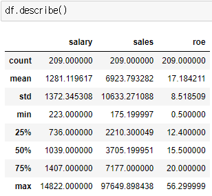 - df.describe() 통해 모든 변수의 기술 통계량 확인하기