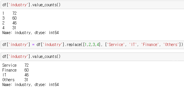 - replace를 통해 범주 이름을 바꿀 수 있음