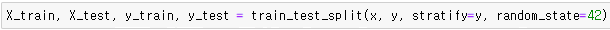 - 데이터의 라벨(범주)이 불균형일 경우 stratify=y 설정