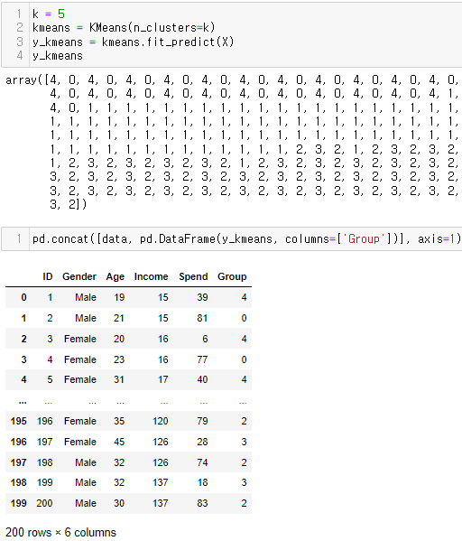 - 학습(fit)만 한 후 결과들을 kmeans_pred에 담음