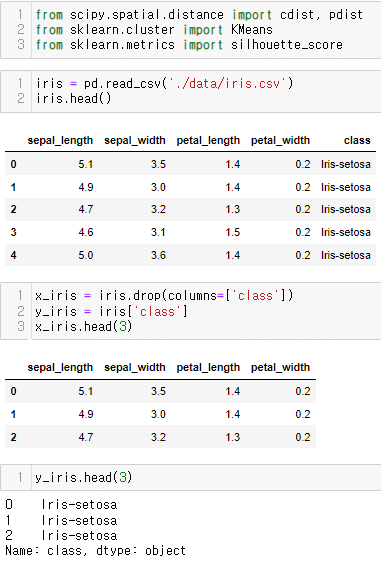- 'kmeans.inertia_'는 군집의 중심과 각 케이스(개체) 간의 거리를 계산함