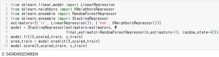 - 스태킹은 데이터셋이 아니라 여러 학습기에서 예측한 예측값(predict value)으로 다시 학습 데이터를 만들어 일반화된 최종 모델을 구성하는 방법