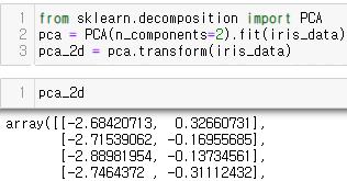 - 그러므로 decomposition의 차원축소 방법인 '주성분 분석(PCA)'를 가져옴