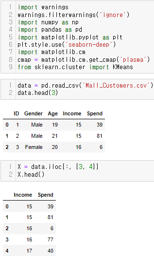 - 크게 감소하다가 변화가 없는 지점에서 최적의 군집 수 k를 결정