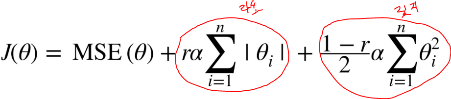 - 규제항은 릿지와 라쏘의 규제항을 단순히 더해서 사용