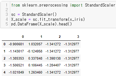- 기술통계를 살펴보면 4가지 변수의 단위가 다름 => 정규화 과정 필요