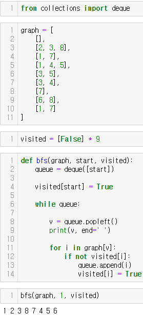 탐색 시작 노드를 큐에 삽입하고 방문 처리를 함