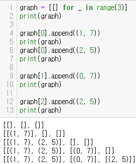 인접 리스트(adjacency list): 리스트로 그래프의 연결 관계를 표현하는 방식