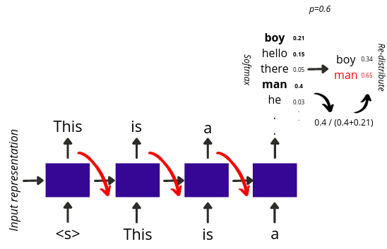 - 또한 softmax의 temperature 값을 가지고 놀 수 있고 온도 값을 0에 가깝게 설정하고 위에 언급한 기술을 적용해 분포가 어떤 의미에서는 더 치우치게 할 수 있음